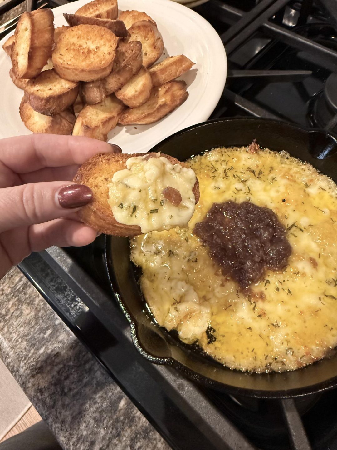 - Serve: Carefully remove the pan from the oven and serve immediately with crusty bread or fresh crostinis for dipping.